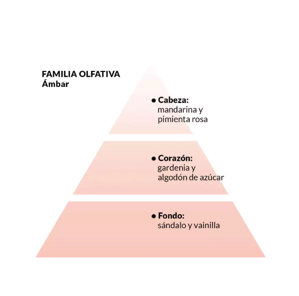 Refrescante, sutilmente dulce y seductora, con una pizca especiada. Para mujeres que buscan un toque sofisticado, magnético y misterioso.